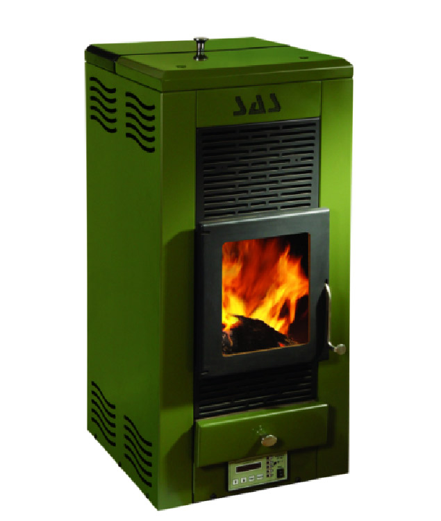 Повітряний камін SAS MINI-ECO побудований таким чином, що контейнер з паливом та камера згорання являють одну конструкцію, завдяки цьому камін є малогабаритним і може без проблем монтуватись у квартирах. Шнекова авто подача транспортує у камеру згорання пелету де відбувається розпалювання за допомогою електричного тена. Кількість палива та повітря яке поступає у камеру згорання керується за допомогою електронного блоку. Додатковий приток повітря забезпечує оптимальний процес горіння і створення повітряної завіси завдяки якій запобігається забруднення жаростійкого скла. Під час процесу горіння полум’я нагріває радіатор якй знаходиться у верхній частині каміна, коли радіатор нагрівається до певної температури вмикається додатковий вентилятор який здуває тепло з радіатора, таким чином забезпечує швидкий нагрів приміщення. Інтенсивність полум’я та температуру у приміщенні можна регулювати на електронному блоці або за допомогою дистанційного керування яке полегшує користування каміном. Камін виготовляється у потужностях 9 , 12 , 17 kW Основне паливо: пелета з деревини 6 та 8 мм. Гарантійний термін становить 5 років.